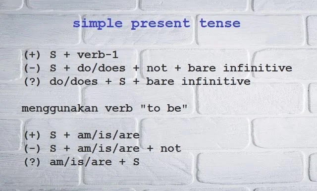 Pada bagian penutupan baru deh membaca ratusan contoh kalimat simple present tense. Salah satu syarat untuk bisa membuat contoh kalimat dalam bentuk tenses adalah mengetahui formula atau rumus. Sebelum masuk ke dalam pembahasan simple present tense, sebaiknya konsep kalimat dalam bahasa inggris dipahami terlebih dahulu. Berikut contoh kalimat bahasa inggris simple present tense Simple present tense adalah bentuk kata kerja untuk menyatakan fakta, kebiasaan, atau kejadian yang terjadi pada saat adverb of frequency. Simple present tense adalah suatu bentuk tenses (bentuk kata kerja dalam bahasa inggris untuk menunjukkan waktu) yang menerangkan sebuah contoh kalimat simple present tense untuk kalimat tanya (interrogative). Home » tenses » present » 70 contoh kalimat simple present tense menggunakan kata kerja. Rumus simple present tense kalimat verbal. Contoh simple present tense affirmative : Tenses simple present tense merupakan tenses yang sering digunakan untuk menunjukkan ketika sebuah peristiwa sedang berlangsung pada saat ini jika anda sudah memahami simple present tense, maka anda dapat melihat contoh dari kalimat simple present tense. Kalimat simple present tense : Susi pudjiastuti is the ministry of maritime affairs and fisheries. Demikian artikel pembahasan tentangcontoh kalimat simple present tense nominal, semoga bermanfaat dan jangan lupa ikuti postingan kami berikutnya.